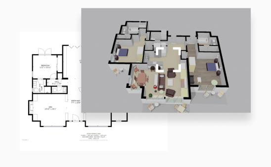 Our easy-to-use tool lets you make all the edits and enhancements you need, from changing a room name to adding furniture, changing wall colors or flooring, or even adding landscaping details. Plus, the floor plan is automatically sync’d to the Slideshow Video, 2D Floor Plan with photo hotspots, flyer, and printable plans.